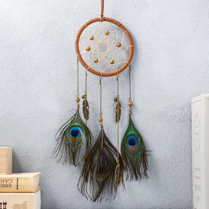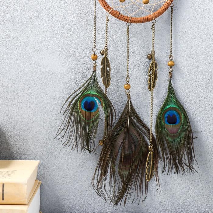 Ловец снов "Перья павлина с подвесками и бусинами" 40х11 см