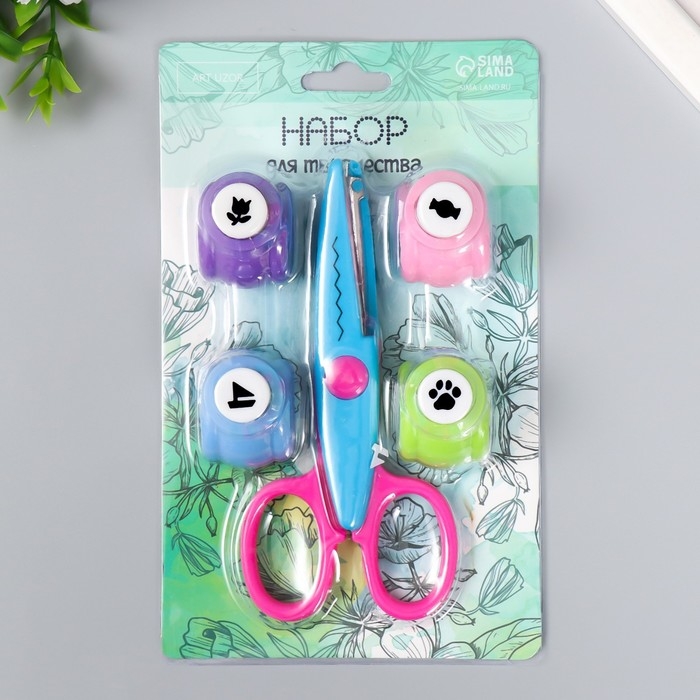 Набор для скрапбукинга "Средняя волна" ножницы фигурные 13,5см+4 дырокола d=1,2см 11,2х18 см 94115