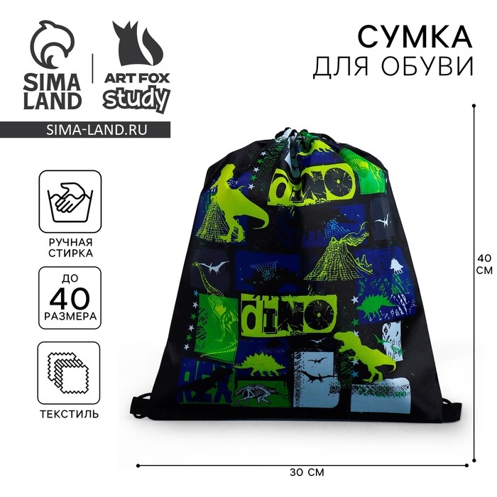 Мешок для обуви «1 сентября: Dinotime» нетканное полотно, размер 30 х 40 см