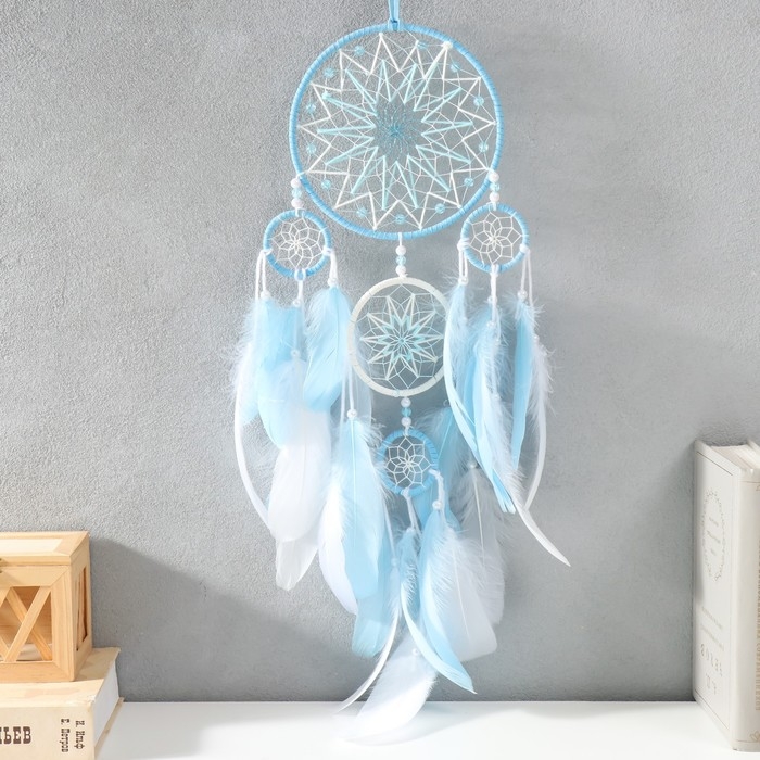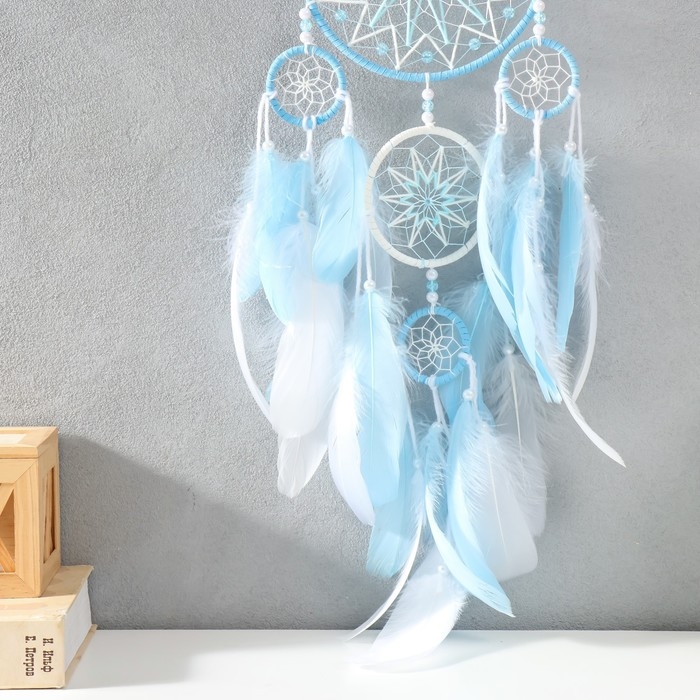 Ловец снов 5 колец "Многоконечная звезда" бело-голубой d=5, 9 и 16 см 16х66 см
