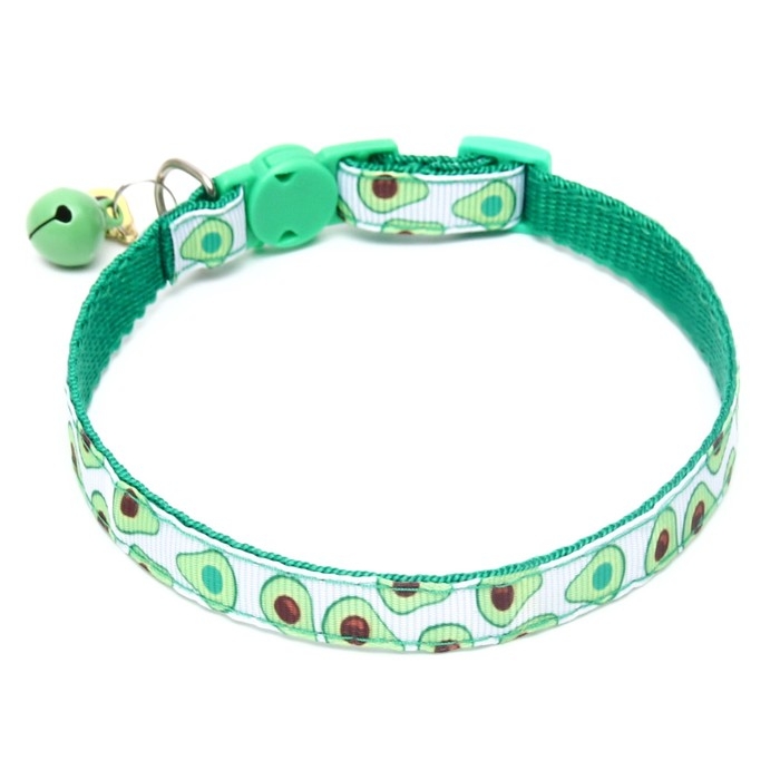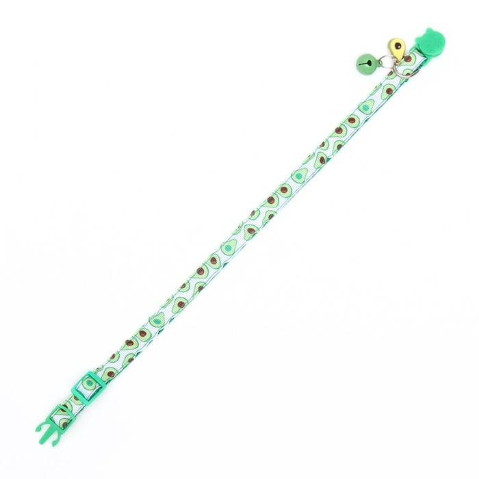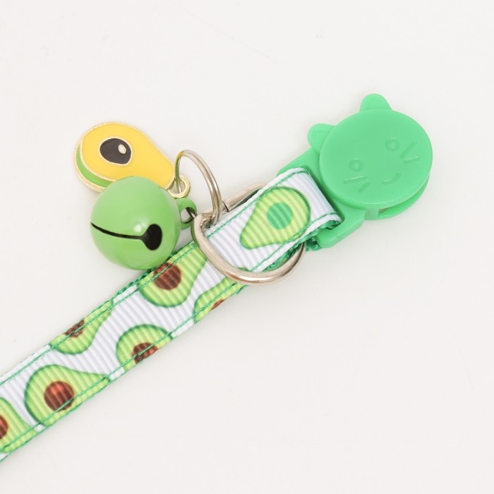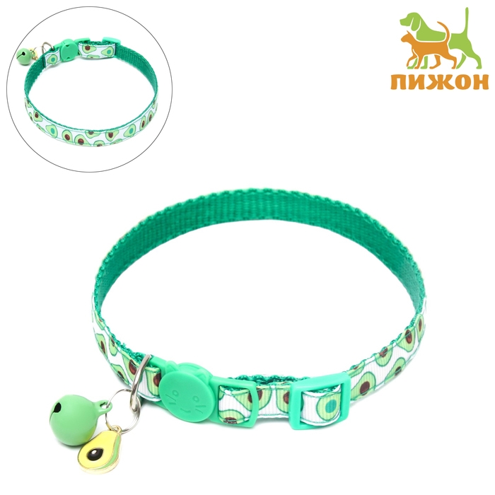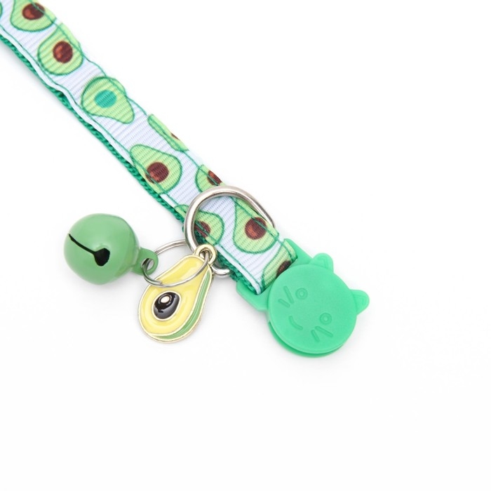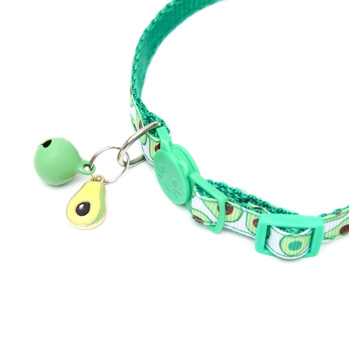 Ошейник текстильный "Авокадо" с бубенчиком и подвеской, 19-32 х 1 см