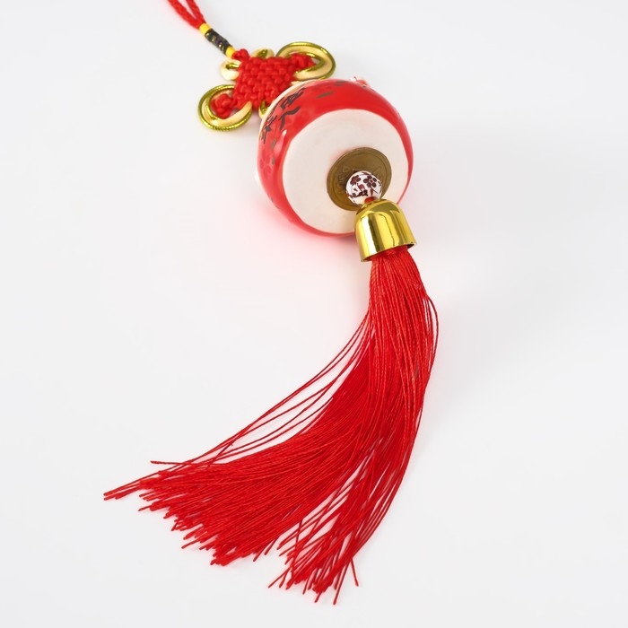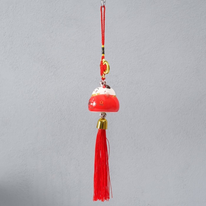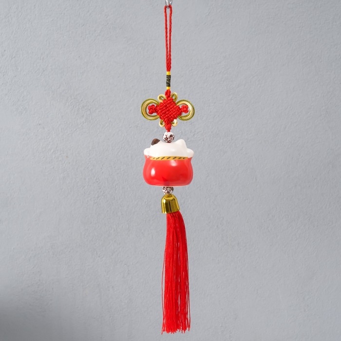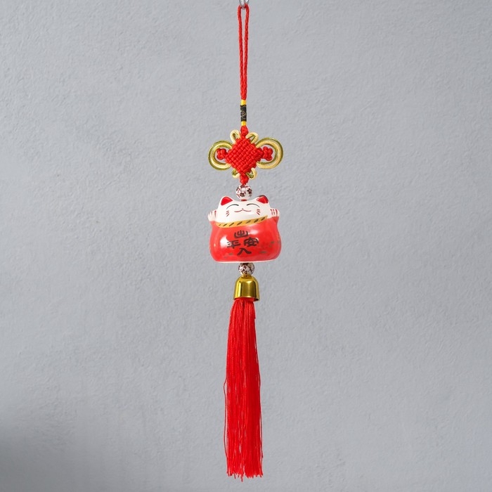 Подвеска керамика "Манэки-нэко с узлом счастья" красный 5х5х36 см