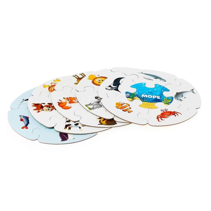 Пазлы- лото «Мир животных», 5 пазлов, 30 элементов
