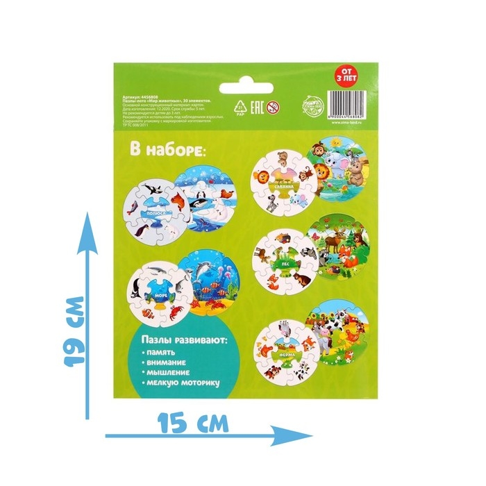 Пазлы-лото «Мир животных» развивают память, внимание, мелкую моторику.
