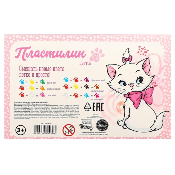 Пластилин 12 цветов 180 г «Мари», Коты-аристократы