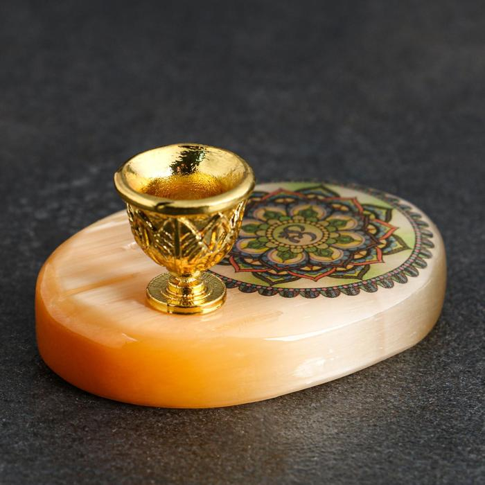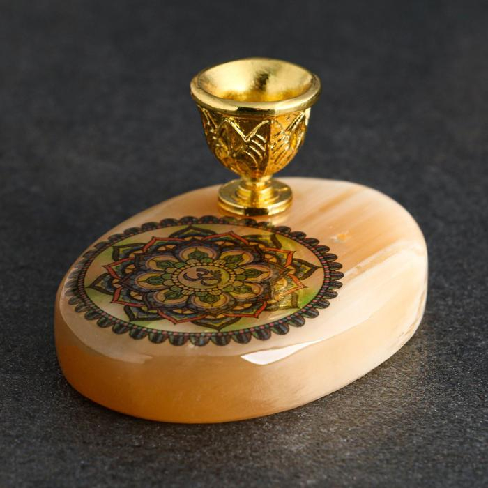 Подсвечник "Знак Ом" с отверстием под благовония, селенит