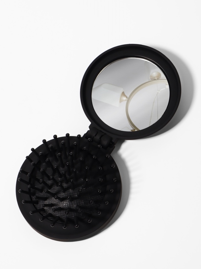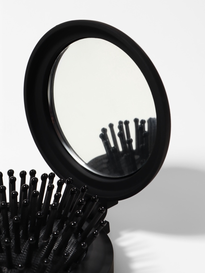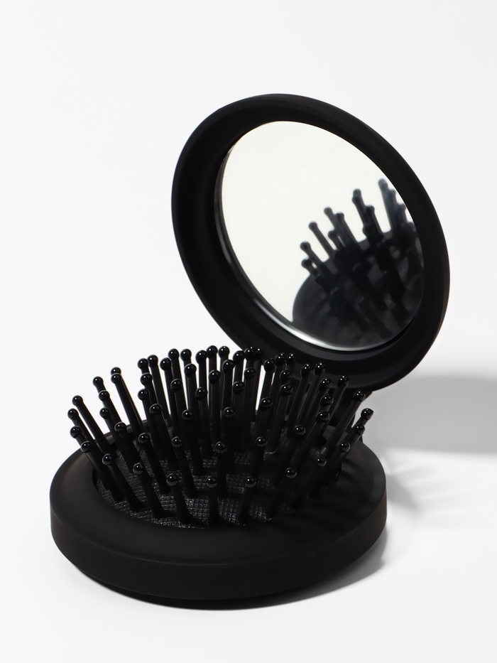 Расчёска массажная «Классика», складная, с зеркалом, 7×2.5 см, матовая, чёрная