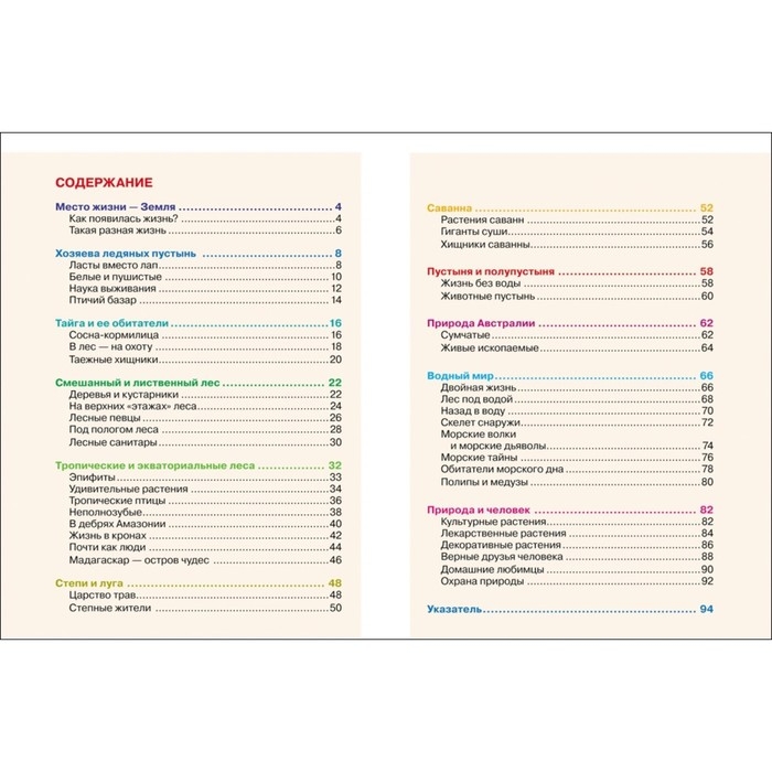 Книга серии "Детская энциклопедия РОСМЭН" знакомит с животным и растительным миром нашей планеты. В издании представлена систематизированная информация об обитателях тундры, тайги, смешанных лесов, степей, гор, морей, пресных водоемов, а также о домашних животных и культурных растениях. Книга снабжена великолепными иллюстрациями.