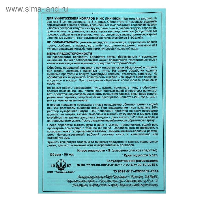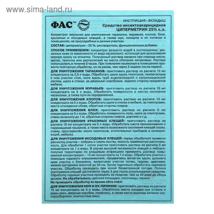 Концентрат эмульсии широкого спектра действия, подходит для уничтожения насекомых: