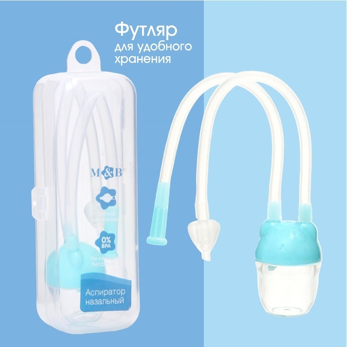 Детский назальный аспиратор с отводной трубкой «Мишка», цвет голубой