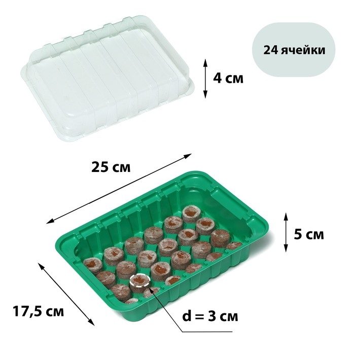 Мини-парник для рассады: кокосовая таблетка d = 3 см (24 шт.), парник 25 × 17,5 см, jiffy
