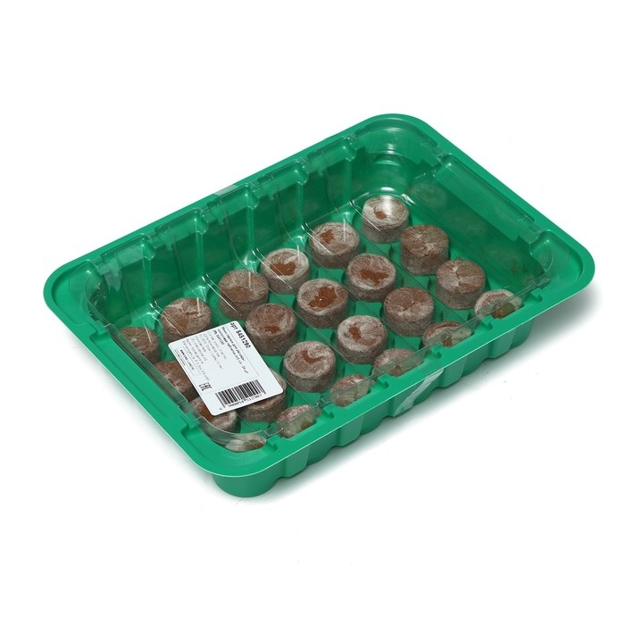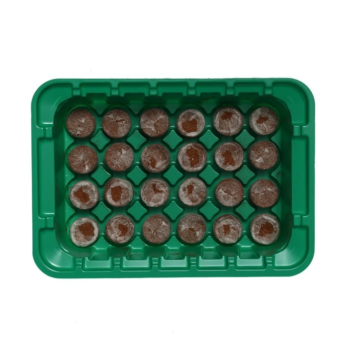 Набор для рассады: торфяная таблетка d = 4.1 см, 24 шт., кассета на 24 ячейки по 40 мл, поддон 35,5 × 22,5 см, зелёный, пластик, Экоторф