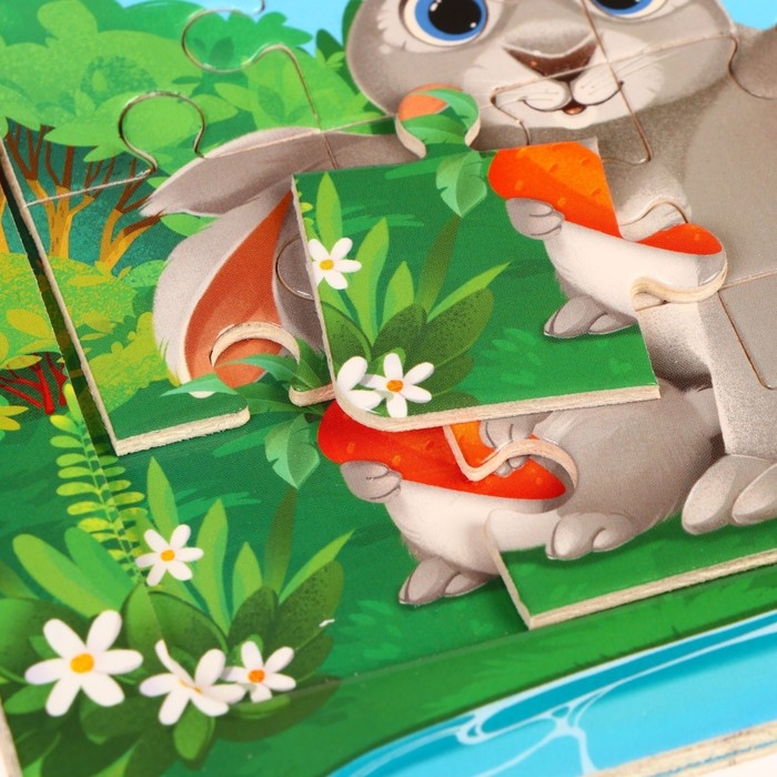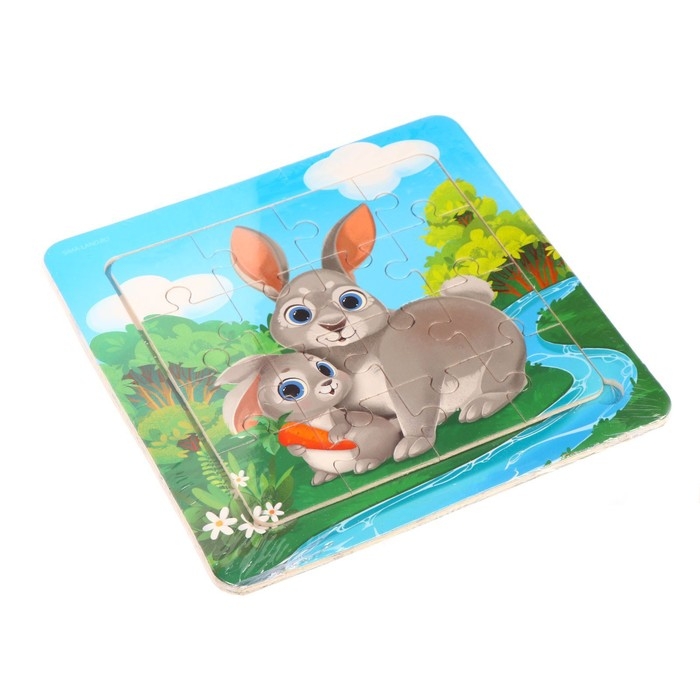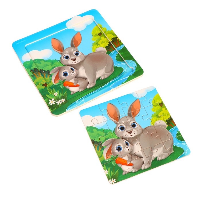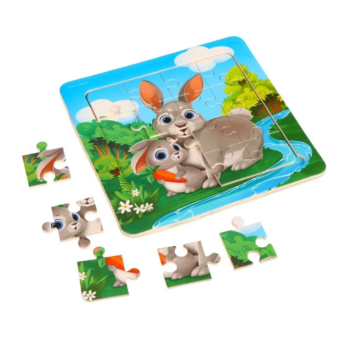 Пазлы «Милые зайчата», 16 элементов, 14×14 см