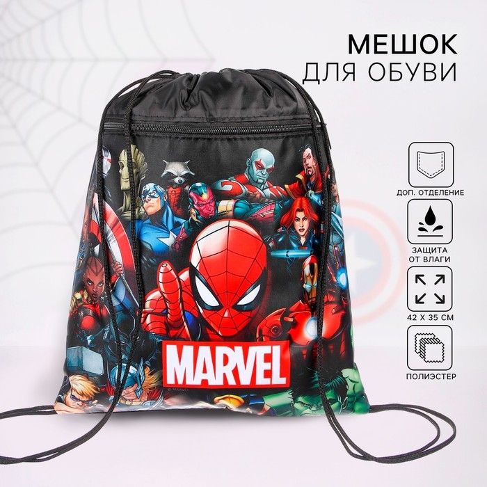 Мешок для обуви с карманом 420*350 мм, Человек-паук