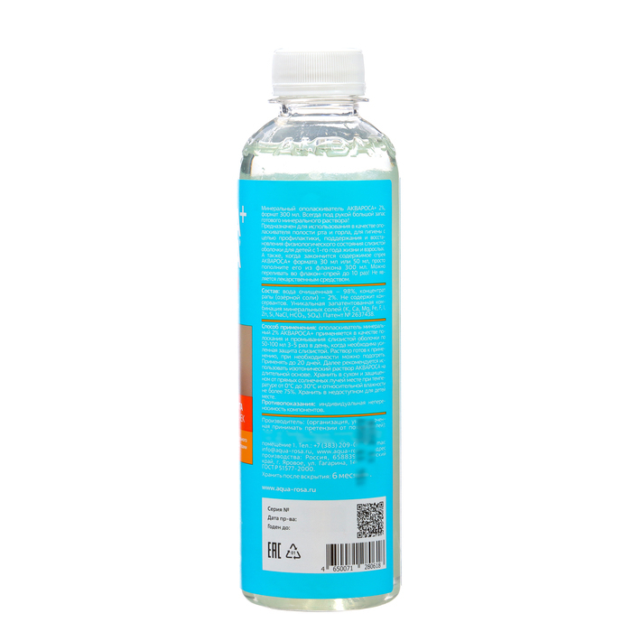Ополаскиватель "АкваРоса+", минеральный, гипертонический раствор 2%, 300 мл