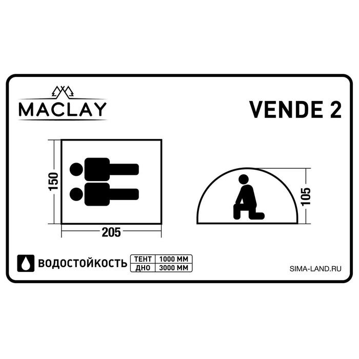 Палатка предназначена для 2 человек. Влагостойкость тента составляет 1000 мм водного столба, поэтому палатка защищает от влаги в условиях непродолжительных и моросящих дождей. При сильных или долгих ливнях тент может пропустить влагу.