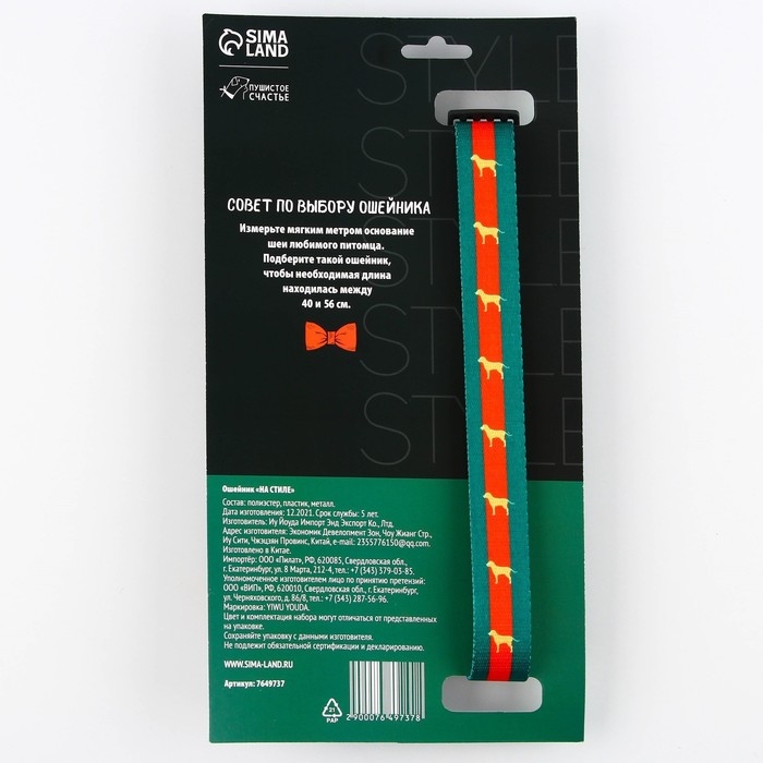 Размеры ошейника: 2,5 см, 40–55 см.