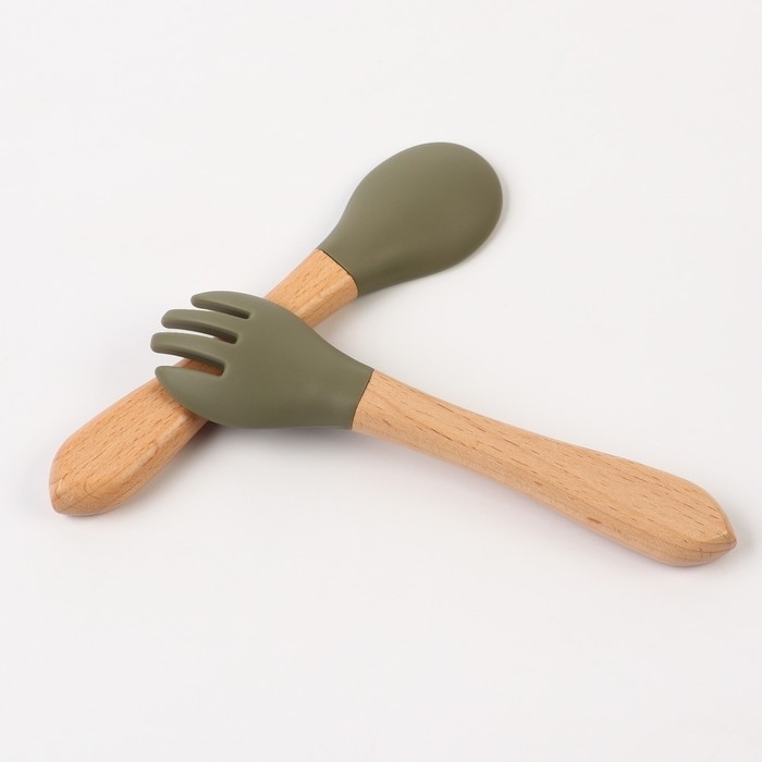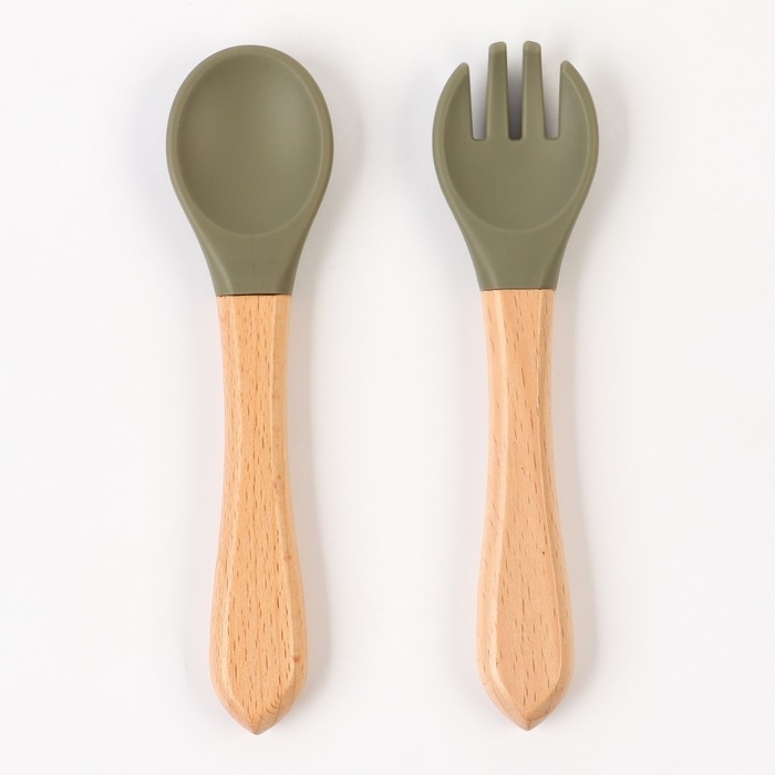 Набор детский столовых приборов, вилка и ложка M&B (силикон, бамбук), зеленый