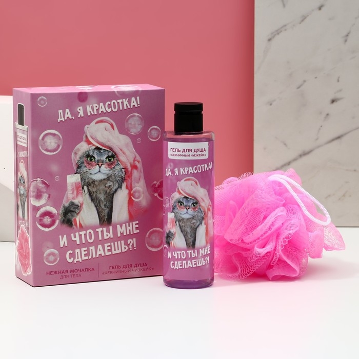 Подарочный набор косметики «Да, я красотка!», гель для душа 250 мл и мочалка, ЧИСТОЕ СЧАСТЬЕ