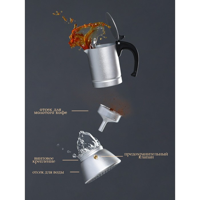 Кофеварка гейзерная Magistro Classic black, на 4 чашки, 200 мл, цвет чёрный