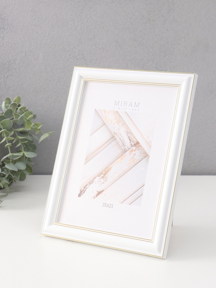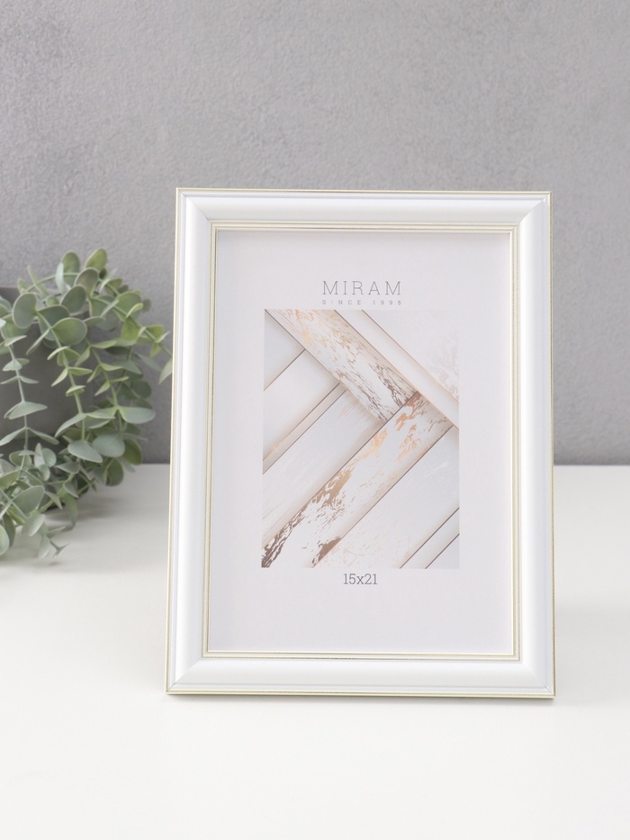 Фоторамка пластик "МИРАМ" 15х21 см, белый, золото