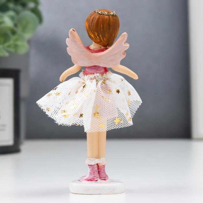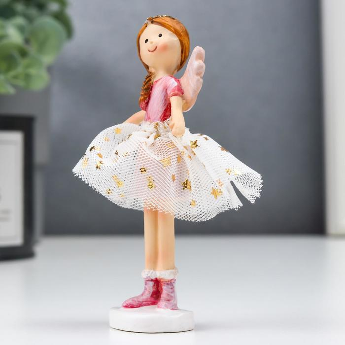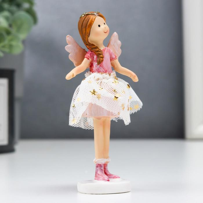 Сувенир полистоун "Ангел-малышка с косой, в белой юбочке со звёздами" розовый 10х3х5 см