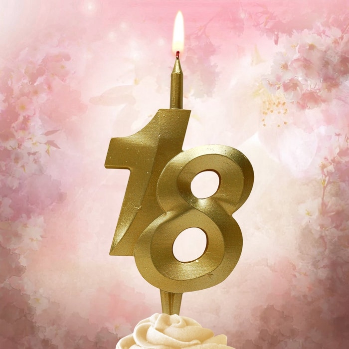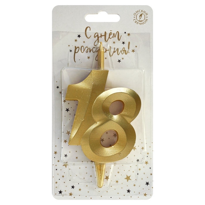 Свеча в торт «Юбилейная», цифра 18, золотая