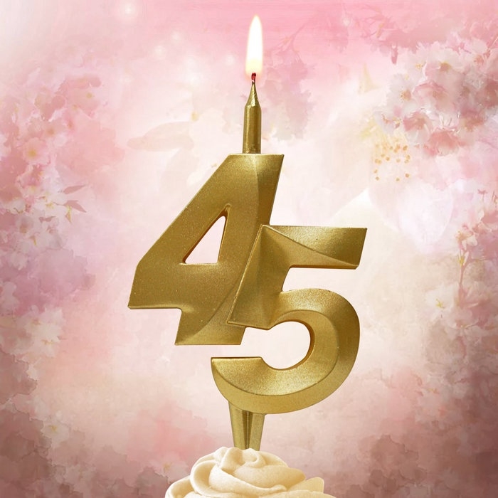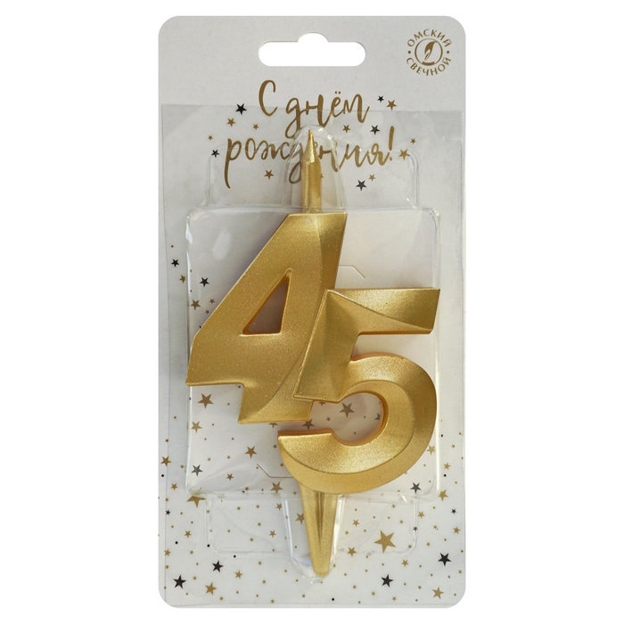 Свеча в торт «Юбилейная», цифра 45, золотая