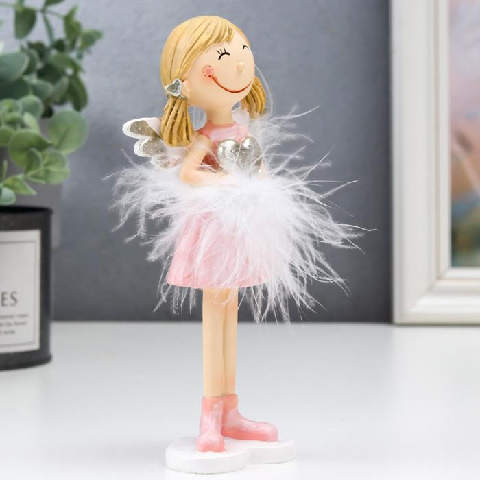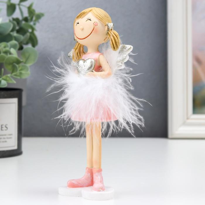 Сувенир полистоун "Ангел-малышка с хвостиками, с сердечком" пух 16х5,5х7,5 см