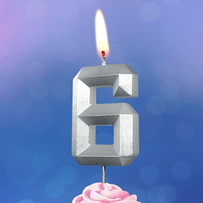 Свеча в торт на шпажке «Серебряные грани», цифра 6, серебряная