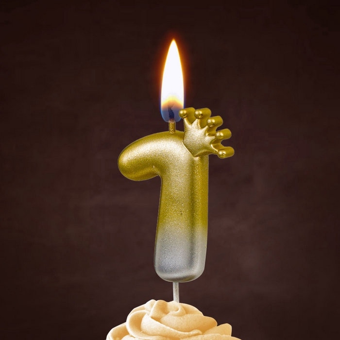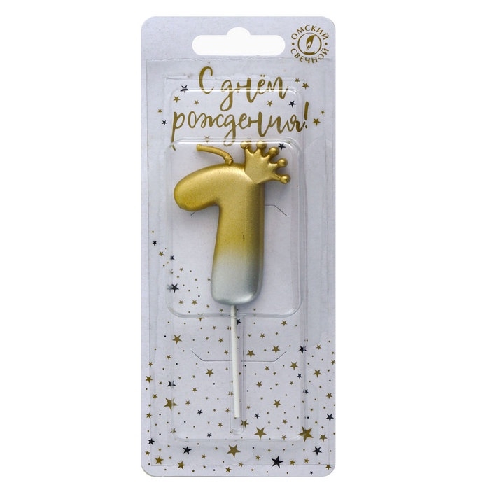 Свеча в торт «С короной», цифра 1, золото - серебро