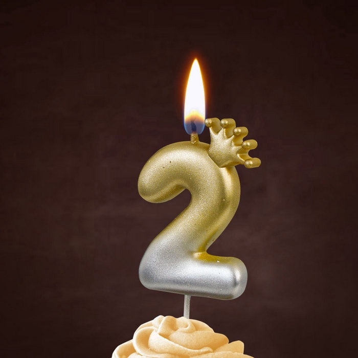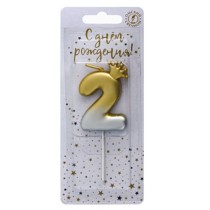 Свеча в торт «С короной», цифра 2, золото - серебро