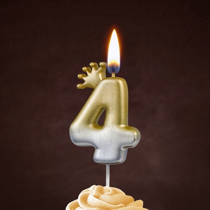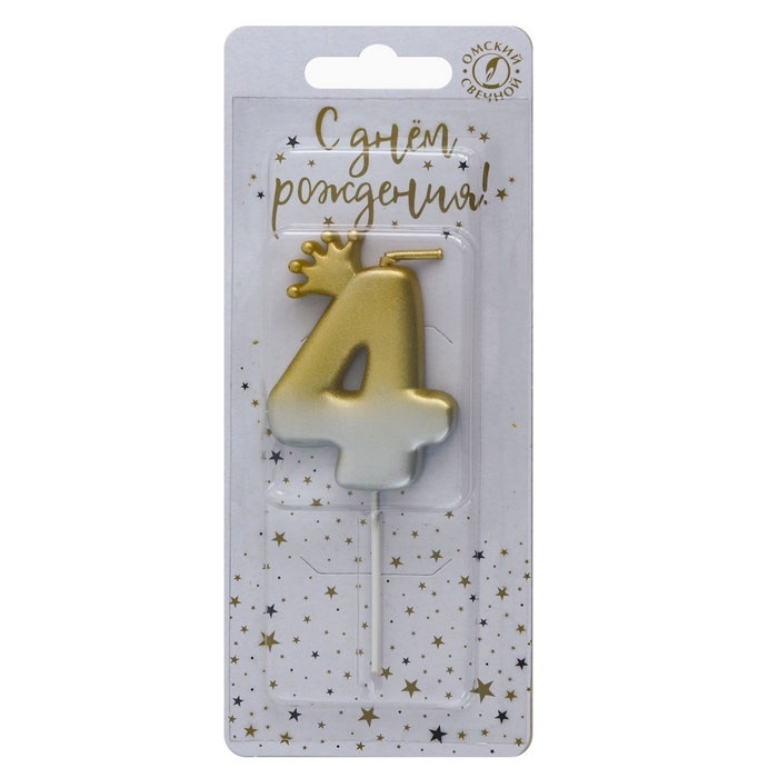 Свеча в торт «С короной», цифра 4, золото - серебро