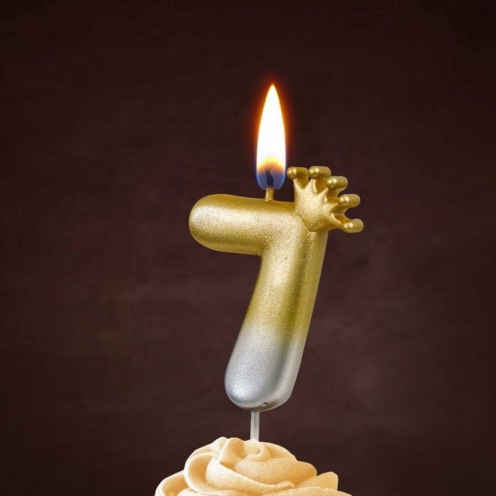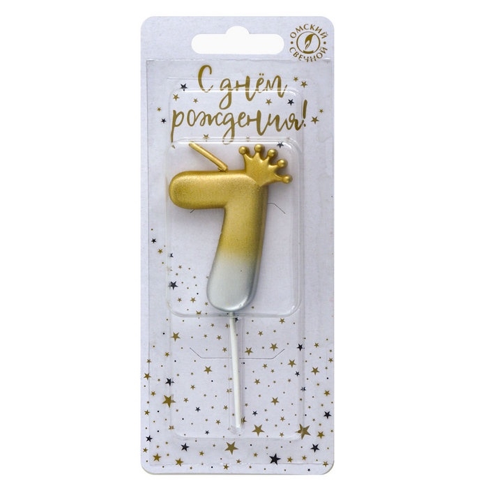 Свеча в торт «С короной», цифра 7, золото - серебро
