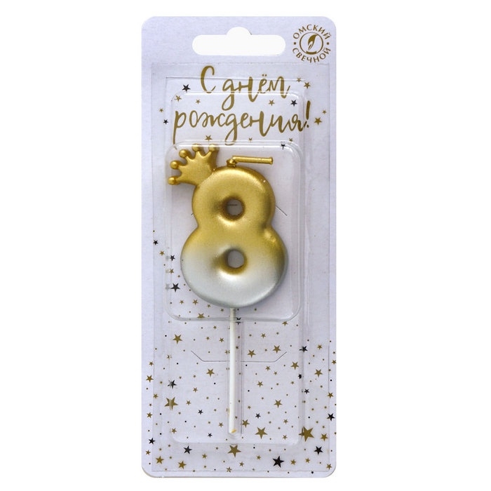 Свеча в торт «С короной», цифра 8, золото - серебро