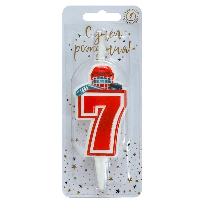 Свеча в торт «Хоккейная», цифра 7, красная