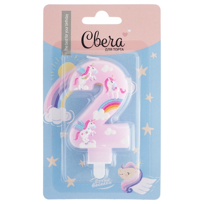 Свеча в торт « Волшебные единороги», цифра 2, розовый, 9 см