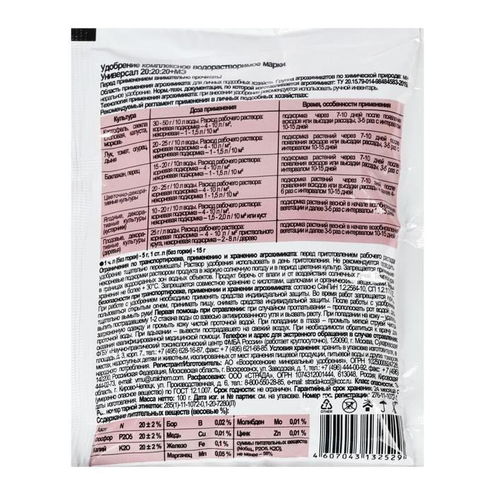 NPK 20:20:20 + B, Cu, Fe, Mn, Mo, Zn.