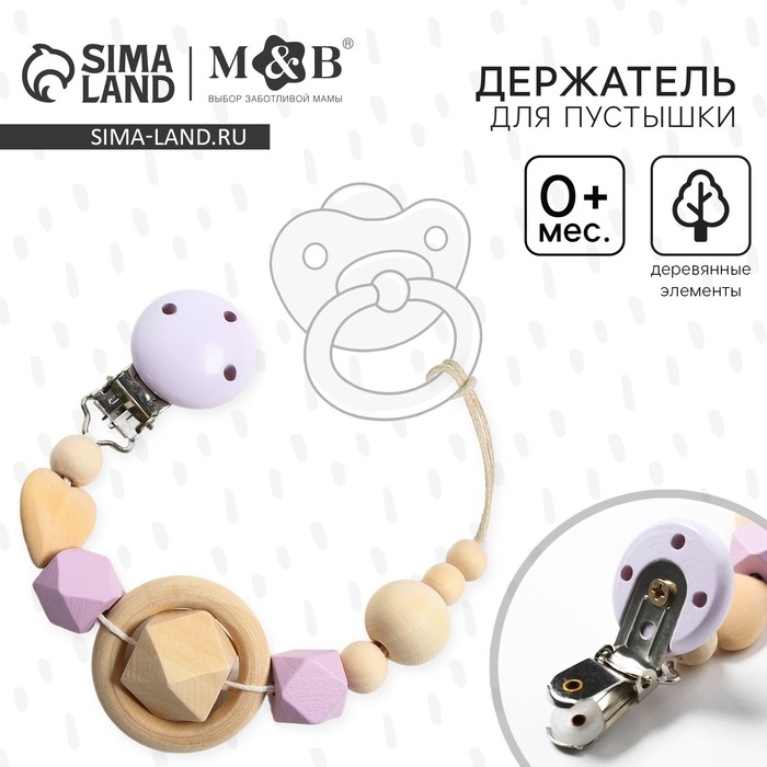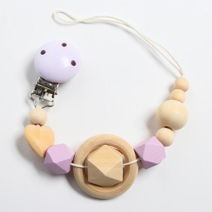 Держатель для соски - пустышки «Сердечко», деревянный, цвет фиолетовый