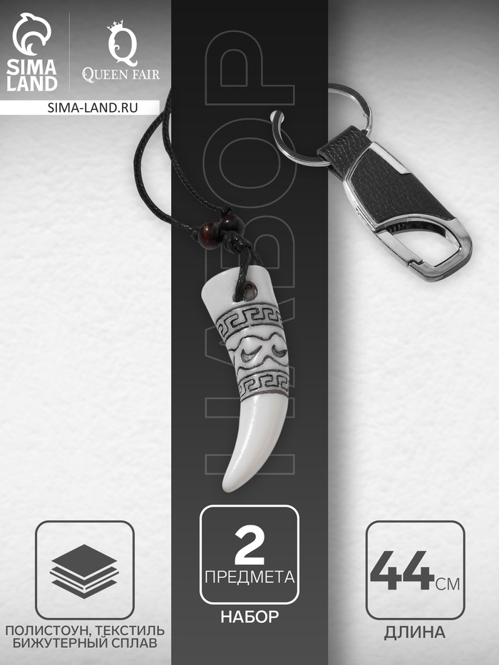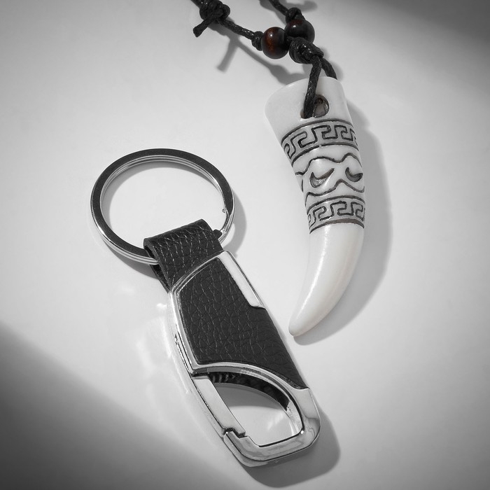 Набор 2 предмета: кулон, брелок «Клык», цвет белый в серебре, 44 см