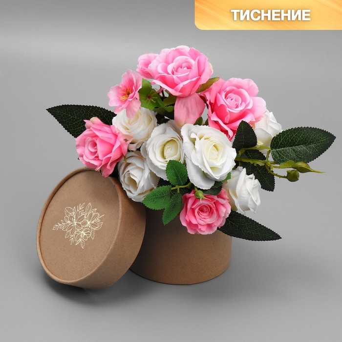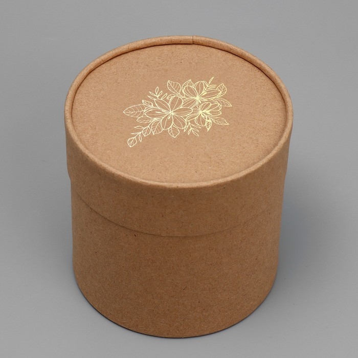 Коробка подарочная шляпная из крафта, упаковка, «Цветы», 12 х 12 х 12 см