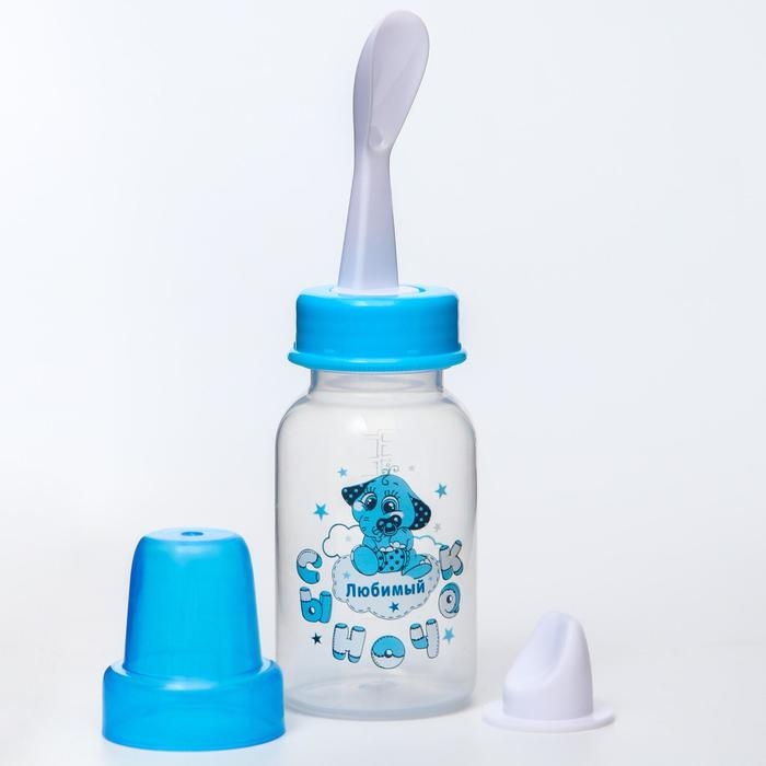 Бутылочка для кормления 3 в 1 «Любимый сыночек», в комплекте ложка и носик-поильник, 150 мл, от 6 мес., голубой
