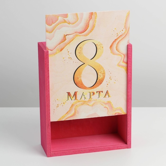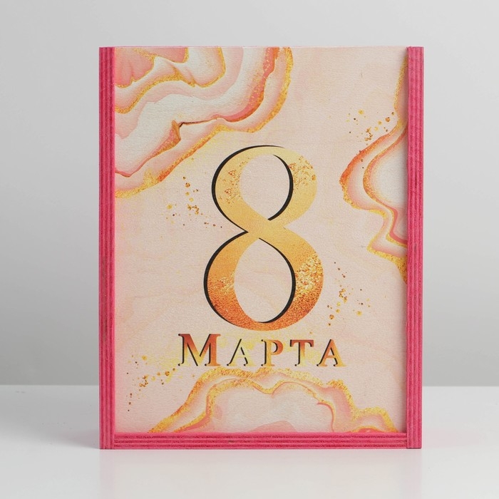 Ящик подарочный деревянный «8 марта, мраморный», 8.5 х 20 х 25 см
