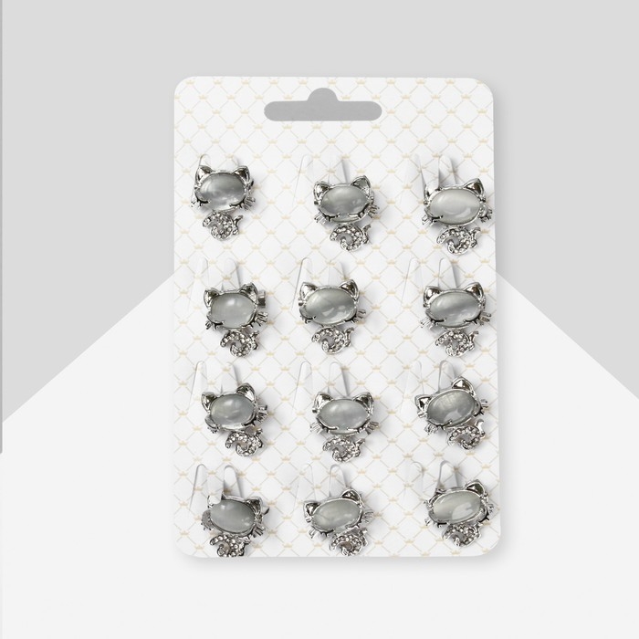 Брошь «Кошечка» спящая, цвет белый в серебре (неделимая фасовка 12 шт., цена за шт.)