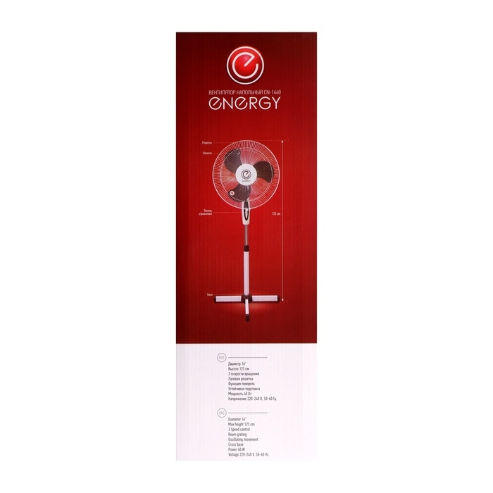 Вентилятор Energy EN-1660, напольный, 40 Вт, 3 скорости, белый
