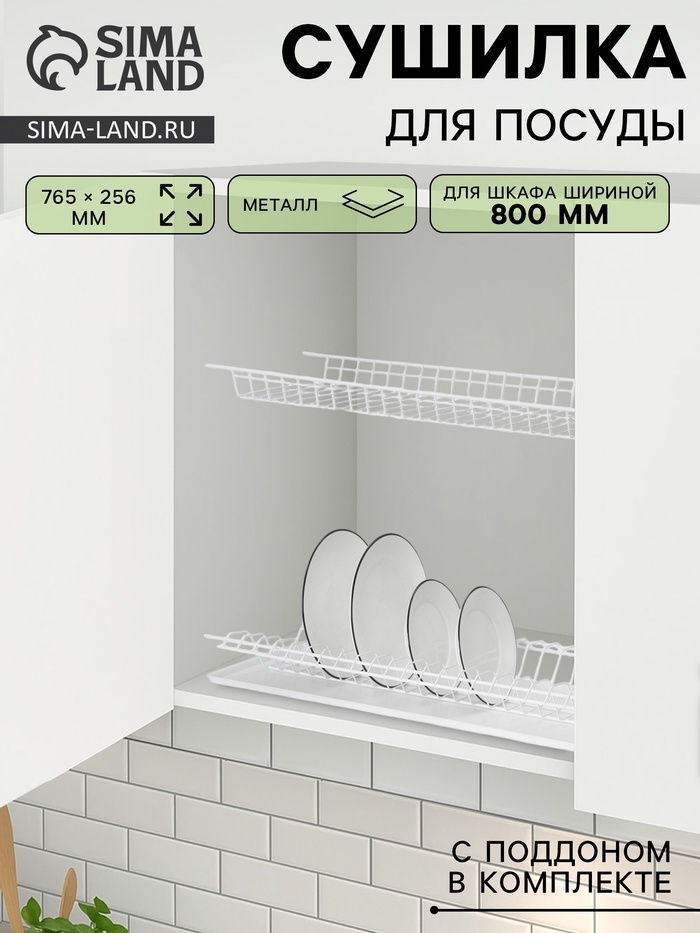 Сушилка для посуды с поддоном для шкафа 80 см, 76.5×25.6 см, белая