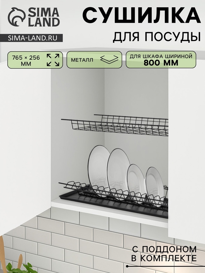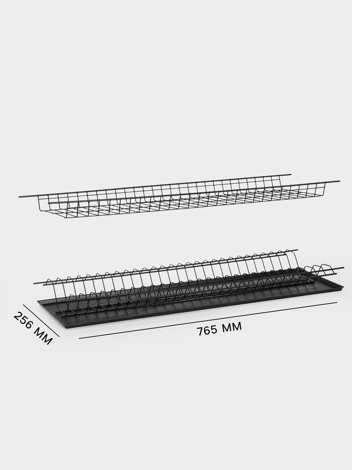 Сушилка для посуды с поддоном для шкафа 80 см, 76.5×25.6 см, чёрная