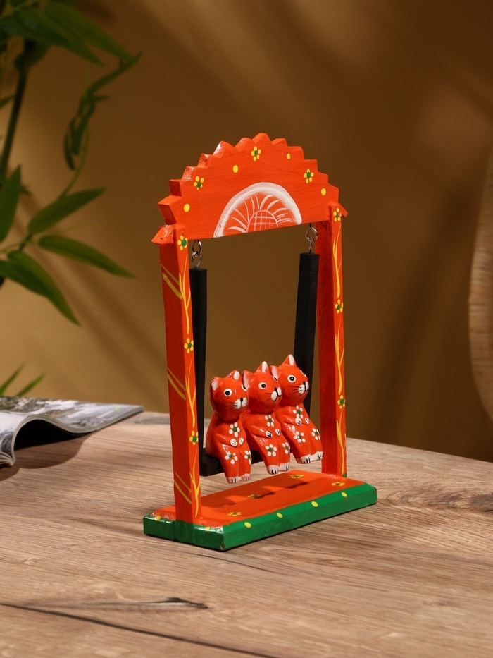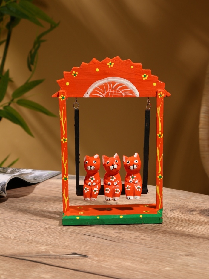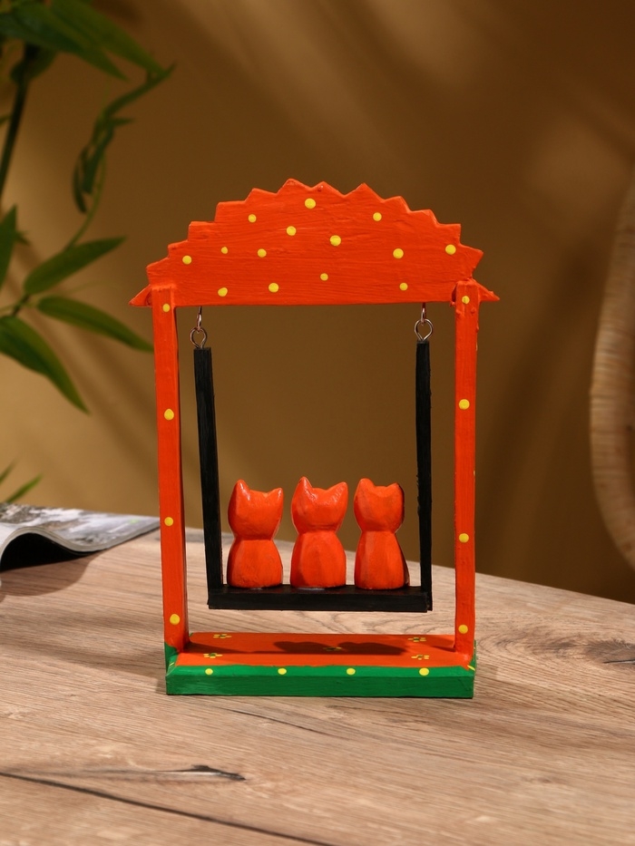 Сувенир интерьерный "Кошки на качелях" дерево 19х24 см