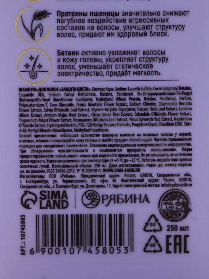 Профессиональный шампунь для окрашенных волос с активным комплексом и скваланом, 250 мл ULAB