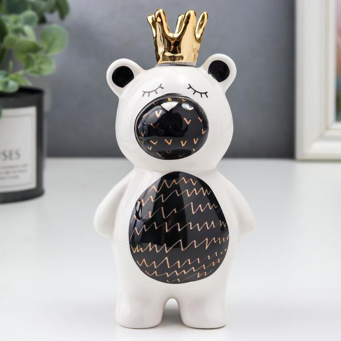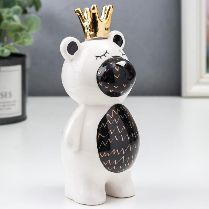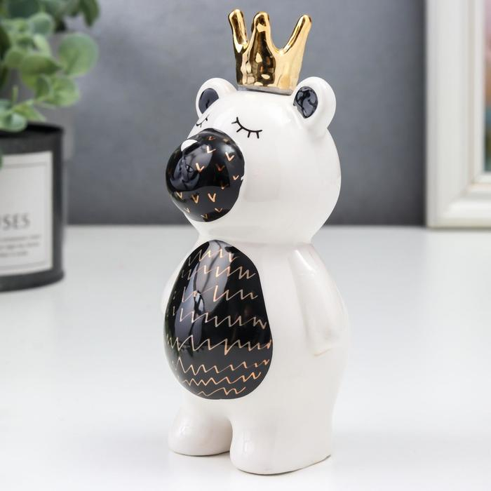 Сувенир керамика "Мишка в короне" бело-чёрный с золотом 14,5х7х7 см